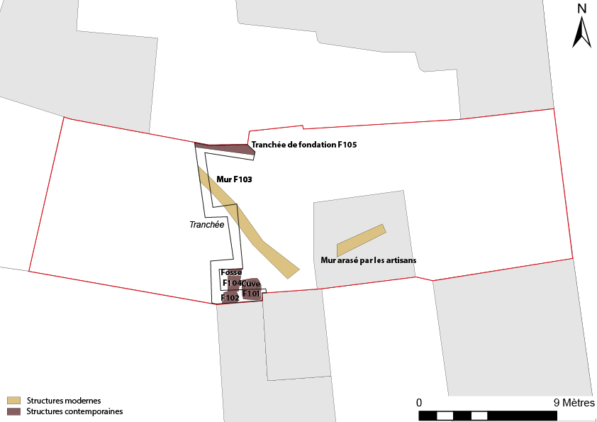 Les structures témoignant de l’occupation contemporaine de la parcelle